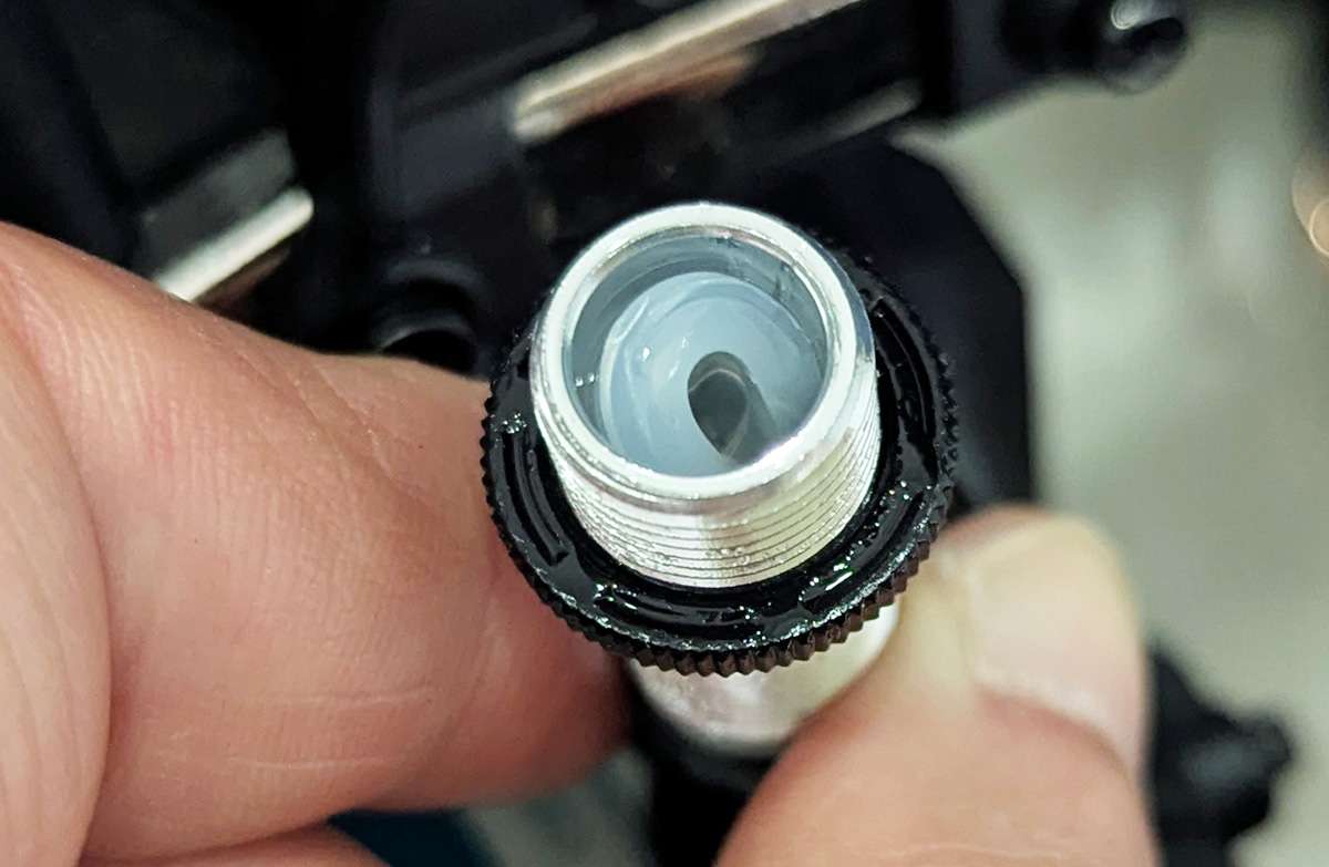 原厂的避震器密封胶圈尺寸不合适,安装时经常从原位置脱落导致漏油。玩的第二天初次发现漏油后,我拆开多个避震器看到胶圈是这种状态,而且有一个胶圈有破损。问卖家说他没有单独的胶圈配件,只能换整只避震器。